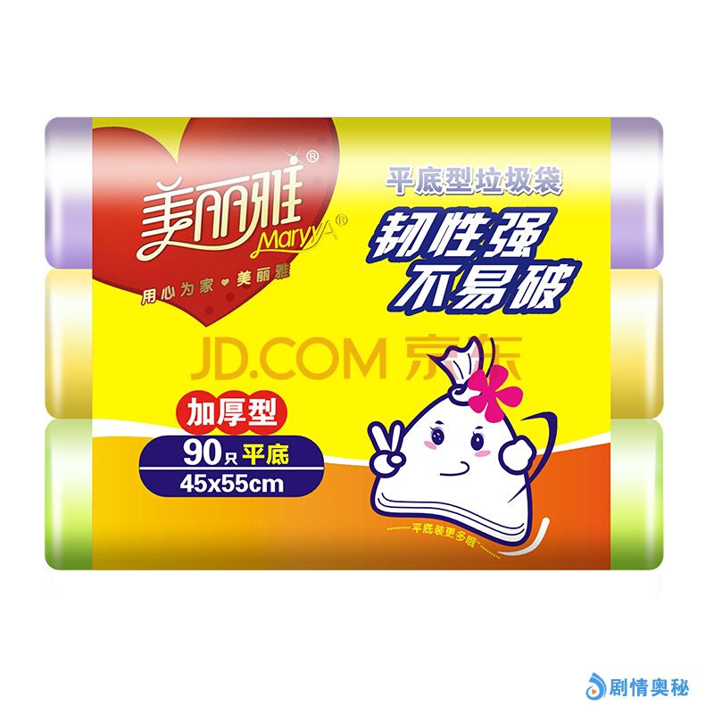 美丽雅垃圾袋断点式平底加厚型家用一次性塑料袋90只