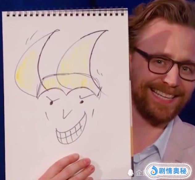 首先是洛基了,洛基作为漫威最受欢迎的反派角色,而且在剧中与哥哥雷神之间的关系也是为大家看好,当洛基画起了自己来,还是有模有样的,头上的两个角再加上自己的邪魅的笑,我想这是蛮还原的。