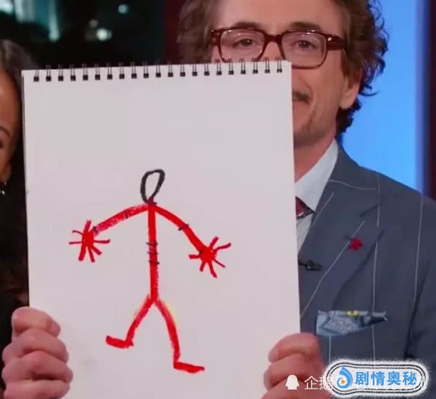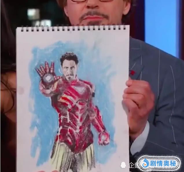 其次看到钢铁侠的自画像还是蛮惊讶的,没想到是如此的真实,很有画画天赋啊,简直就是神仙画画,不过事件的真相很快就暴露了,原来是某个粉丝画的送给他的,不过看到真正的自画像,原谅我笑出了声,这是抽象派画风吗?