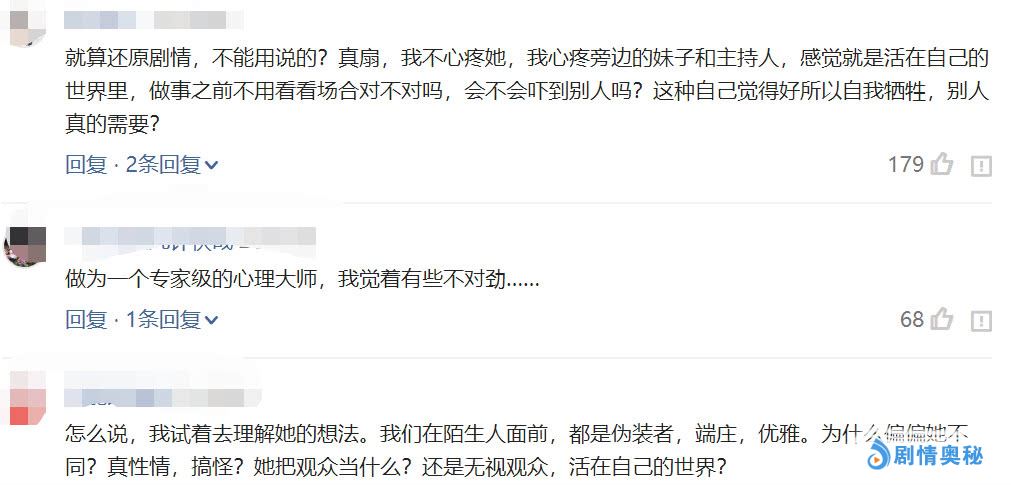 这样的郑爽真的是太与众不同了。放下话筒后给自己一顿正反抽。网友表示:看着都疼。同时不少网友认为她这样不少真性情,而且没考虑其他女演员和主持人,活在自己的世界里。这样气氛应该会很尴尬的吧。还表示希望郑爽看心理医生。