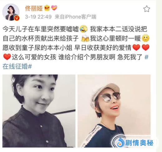 近日佟丽娅的一个微博,引起了网友的群嘲。心疼丫丫一分钟。事情是这样 的,佟丽娅的儿子朵朵在车上的时候突然想尿尿了,然后佟丽娅的助理就把自己的杯子贡献了。丫丫发博也是致谢助理,顺便帮助理招个亲。结果网友却说她双商太低。