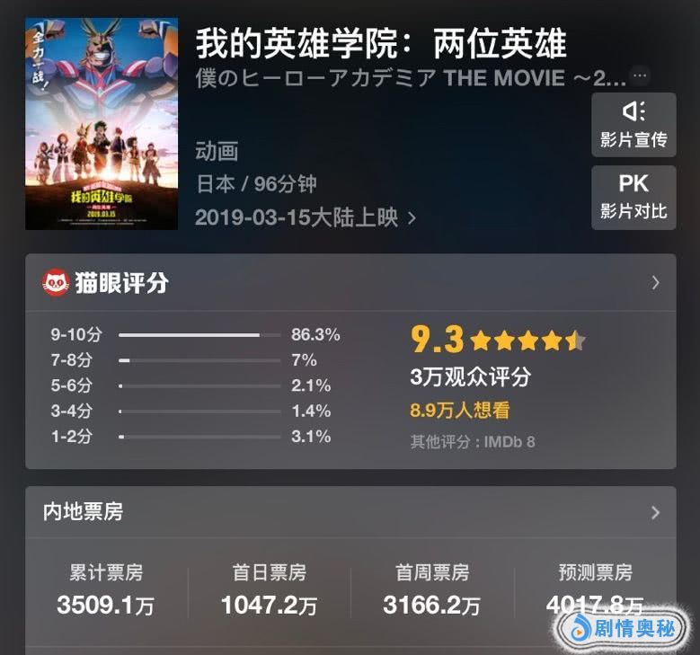 上周五上映的《我的英雄学院:两位英雄》同样被业内寄予厚望。