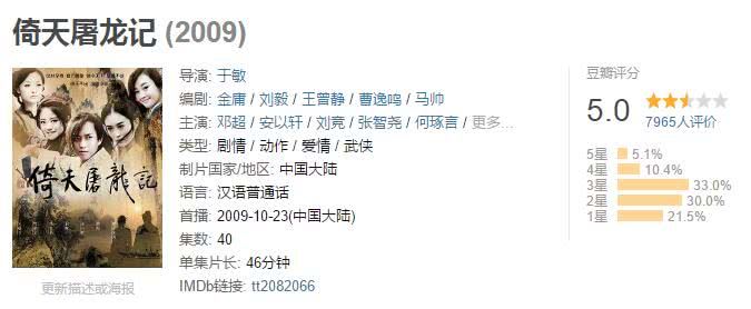 经典武侠剧过几年就会拿出来翻拍一次,就拿《倚天屠龙记》来说,2000年后就翻拍了三个版本,其中2003年苏有朋主演张无忌这一版豆瓣评分是最高的。
