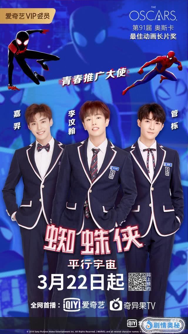 同时,由爱奇艺重磅推出的大热选秀节目《青春有你》中的三位人气超高的练习生,管栎,“蜘蛛侠男孩” 嘉羿,李汶翰共同担任《蜘蛛侠:平行宇宙》的青春推广大使,诚意邀约观众一同进入平行宇宙拯救地球。