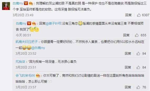 “没有三角恋,摇澜的感情里面从来没有第三者,不要相信预告,我哭了。”对于粉丝们的不满,作为主演的白鹿很快解释回应招摇没有变心,姜武更不是第三者。摇澜夫妇的感情从始至终都很稳定。后面还补充千万不要相信预告。委屈巴巴的语气让人不觉可爱。摇澜夫妇之间的感情被误解,相信小姐姐也很心疼。不然不会第一时间出来澄清,为招摇和厉尘澜站队。以及所谓的时间差,相信理由不会那么简单。可能这只是其中一点。招摇并没有解释得很全面。双箭头的爱情可不仅仅是因为先来后到啊!