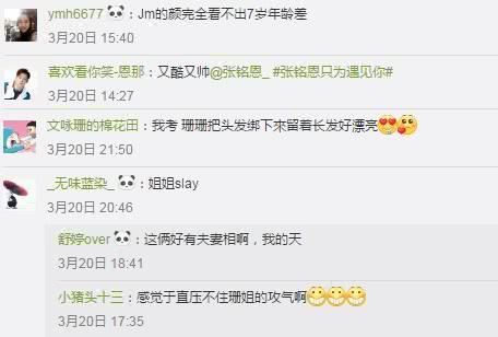 能get不一样的戒指夫妇,粉丝们的反应自然不错,还喊话官博视频太短不够看,希望能再多放一点出来。“Jm的颜完全看不出7岁年龄差!感觉于直压不住珊姐的攻气啊,这俩好有夫妻相啊。”同时也表达了对高洁和于直这对完美组合的喜爱。尤其是文咏珊的表现力。应该是看多了小洁在剧中“柔”的一面,这回的她变得如此酷拽,着实让人眼前一亮。在气势方面,倒是有点赶超霸道总裁的模式。和张铭恩的同框,丝毫瞧不出两人竟然有七岁的年龄差(Jm88年,张铭恩95年),明明就是很登对的夫妻相。所以必须坚定不移地摇起戒指夫妇的大旗。