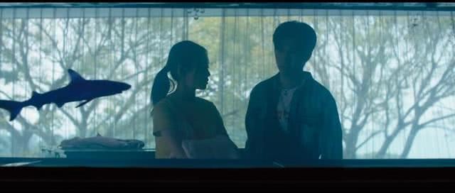 片中鲨鱼的意象可谓提纲挈领,JO与佩佩来到JO亲戚的豪宅中,巨大的鱼缸里有一条来回游动的鲨鱼,鲨鱼本属于海洋却被困在鱼缸里,这仿佛是佩佩自身的隐喻。
