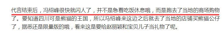 冯绍峰在结束代言活动后,他没有过多停留,而是快速闪人了。冯叔不是去着急吃饭,而是直奔当地商场买东西了。四川是熊猫王国,因此冯叔特意去店铺里购买了熊猫公仔。据说这还是限量版的熊猫公仔,要送给赵丽颖和儿子当做礼物呀。二叔,好贴心啊!