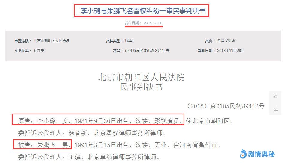 3月21号,北京法院官网发布了李小璐与李鹏飞名誉权纠纷一审民事判决书,结果显而易见,法院判决李小璐胜诉,获赔5万元,被告侵犯李小璐名誉权。