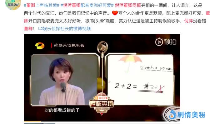 在这期节目中,倪萍请来了董卿做自己的助声嘉宾,合力为麦兜配音,两人的合作十分默契,完美的演绎了作品。