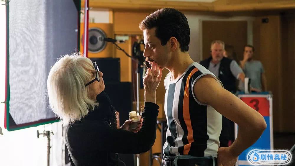 他跟形体教练一起观看默克里的影像资料,1985年的皇后乐队Live Aid的演出录像,看了上千次。他们还从影片《歌厅》(1972)中寻找灵感。