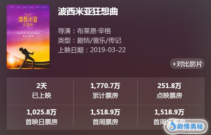 曾在全球掀起观影狂潮的《波西米亚狂想曲》,却在内地无声无息的扑街了,首日票房仅1009万,不足《比悲伤更悲伤的故事》单日票房五分之一,未能挤进前三!