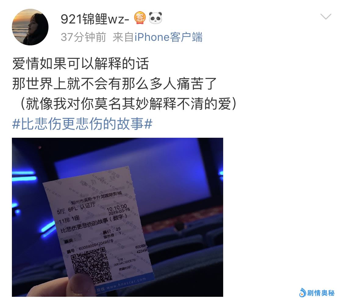 这些片段无一不映射着我们现实中的生活,这也是观众们为之哭泣的一大原因。哭泣的是男女主的悲伤故事,更是联想到了自己的故事。在别人的爱情里面看到自己曾经的影子。《比悲伤更悲伤的故事》正在热映中,带上纸巾,不要化妆,你需要彻底地释放一次自己的眼泪。