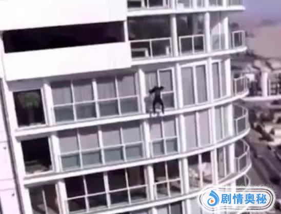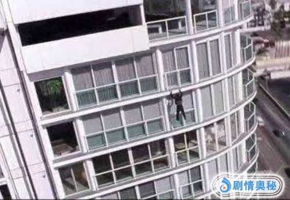 然后徒手往下面跳,每跳一层就用手抓住一层的窗台。