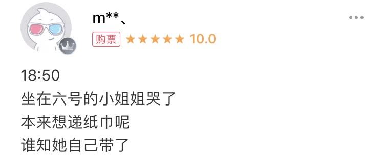 (亲亲,这边的建议是观影前自备纸巾呢)