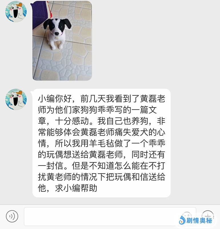 时至今日,黄磊的头像依然是乖乖的照片,十年未变。就在近日,一位署名为“同样的养狗人士”的网友,依照乖乖旧照,用羊毛毡为黄磊制作了一只“乖乖”公仔,惟妙惟肖,形神兼具,背后一双翅膀栩栩如生,俨然就是“住在小狗天堂”里的乖乖。