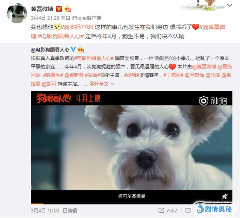 由黄磊领衔主演的电影《狗眼看人心》将于4月20日全国上映,到时可以去电影院感受一下这温暖的故事。