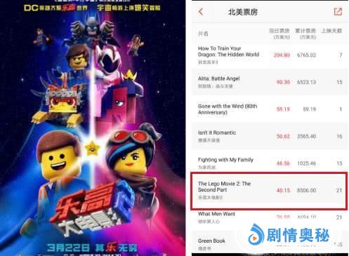 《乐高大电影2》是华纳出品的动画大片,2月8日在北美上映,尽管票房表现不如2014年的第一部,但是依然以8506万美元票房(约人民币5.69亿元)拿到今年2月北美票房冠军。《乐高大电影》第一部全球票房达4.69亿美元,是一个名副其实的动画大IP,系列衍生电影还有《乐高蝙蝠侠》。