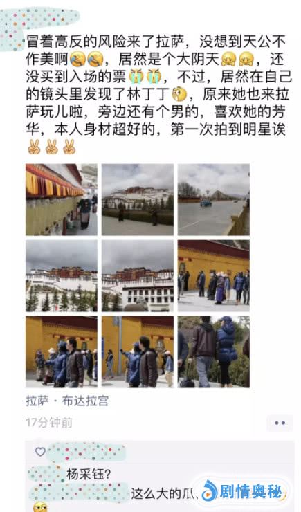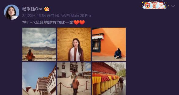 两人公布恋情之后一直很低调,两人在微博上基本没有任何的互动。3月23日杨采钰在微博上晒出去拉萨游玩的照片。