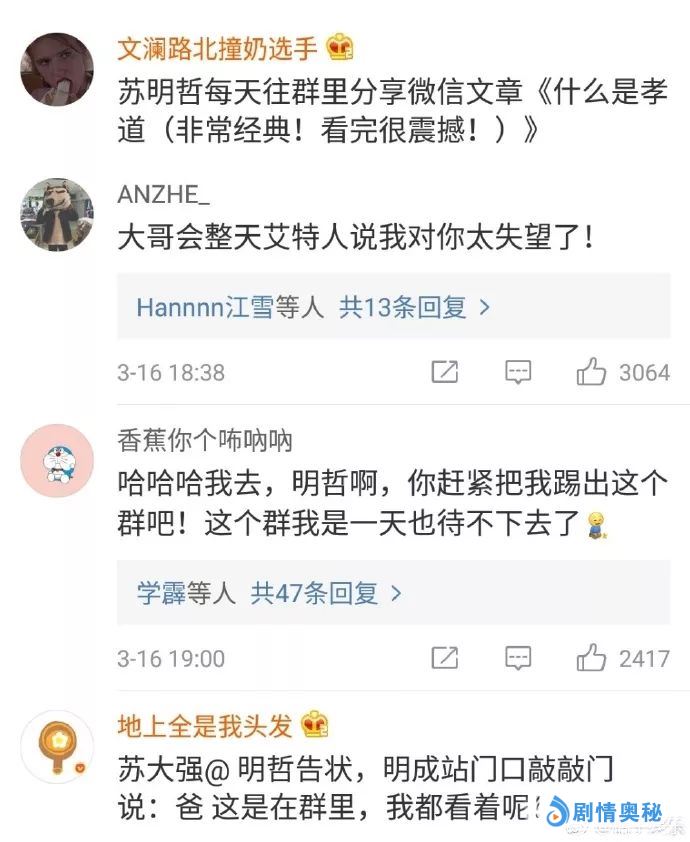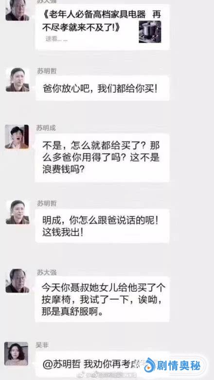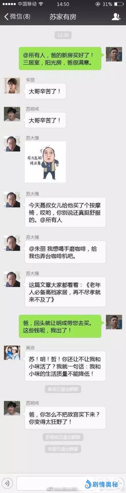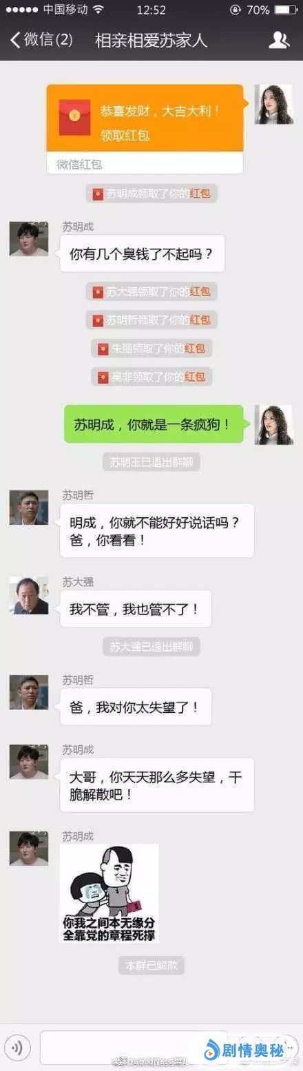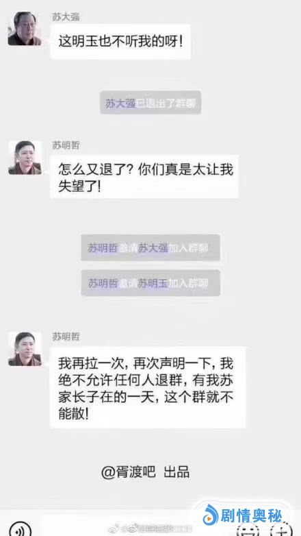 为了治治苏大强这人前一套人后一套两幅面孔,网友提议把苏家的事拉一个微信群,苏大强再也刮不起这股妖风。