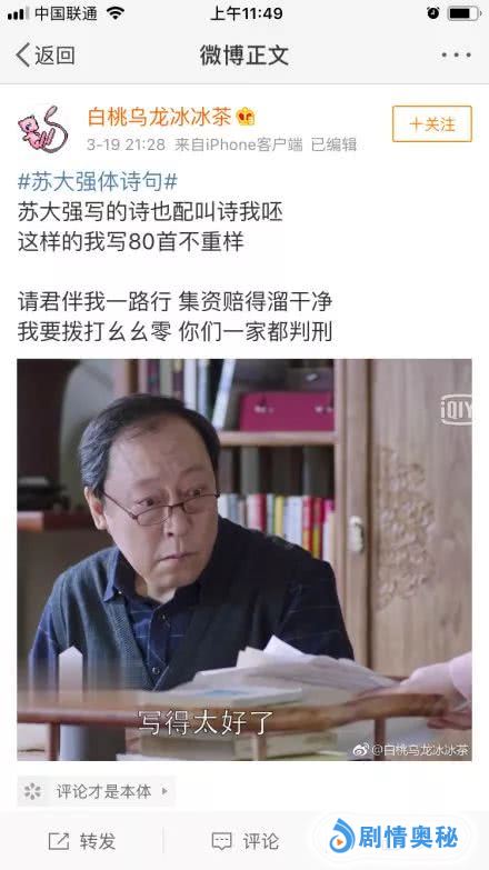 苏大强体诗一出,立刻就有网友强烈表示不服,这样的诗他写80首都不重样!
