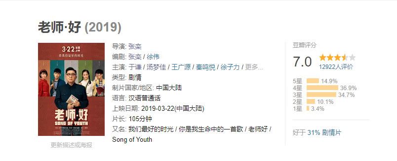 而最近国产新片表现最佳的是于谦主演《老师·好》