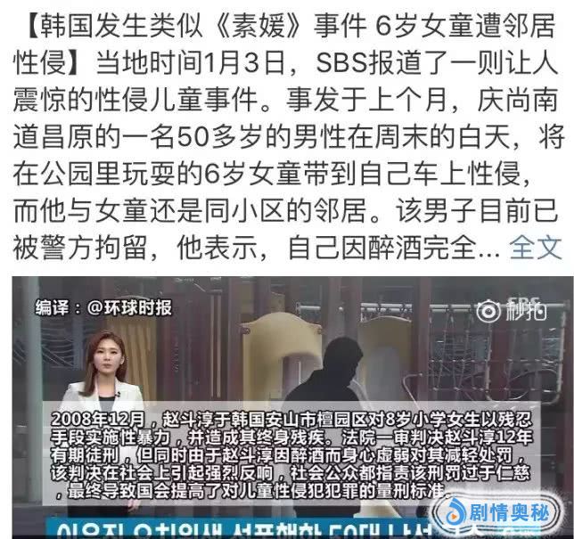 如果法律不严谨,罪犯一次又一次的钻漏洞,那么受害者会越来越多,而且是复制粘贴型的,在去年,韩国就发生一起类似《素媛》事件,事后罪犯居然也想通过醉酒这个借口来逃脱法律的制裁。