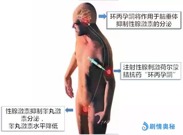 在化学阉割上,它可以通过降低睾丸激素的水平来控制性欲。