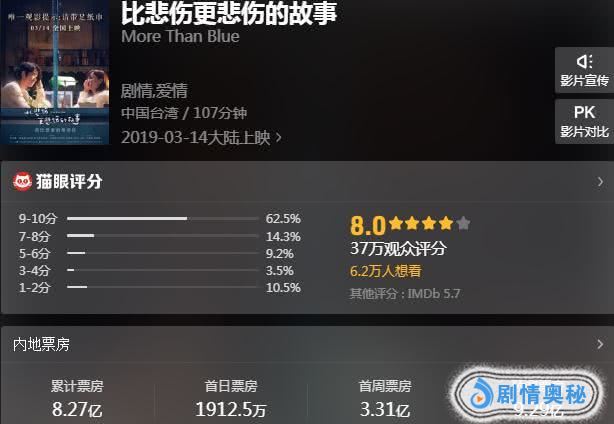 而在票房上面,《比悲伤更悲伤的故事》同样十分成功,上映12天票房8.27亿,连夺11天日冠,力压《惊奇队长》等好莱坞超级大片,这票房爆发力真的太强悍了。