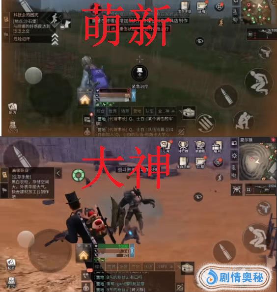 同样的打怪,萌新,哎呀,看到怪物了,上去打去,嘟嘟嘟嘟,,,,打不死,然后怪物反手就是一巴掌,萌新的血就剩下百分之一,赶紧逃。大神打怪物的时候,穿着一身非常厉害的装备,一枪一个,毫无阻碍啊。