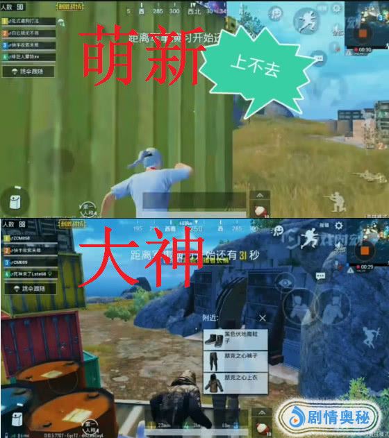 同样的是捡衣服,萌新的小姐姐怎么跳也跳不去上面的箱子,即使跳上去了,跳来跳去的不知道怎么就又掉下去了,大神就厉害了,像泰森人猿一样,在箱子之间跳来跳去的,最后捡到了厉害的装备。