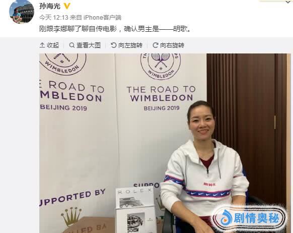 就在3月26日中午,媒体人孙海光在微博上爆料,李娜的自传电影,男主角终于浮出水面是胡歌,这部电影在2月21日已经杀青,导演陈可辛,该电影讲述的是李娜从少年时期、运动员时期到退役之后的人生故事。