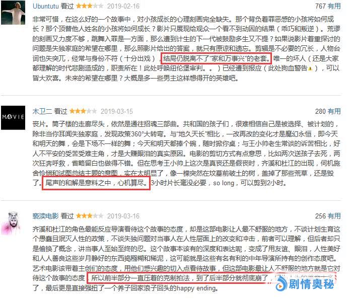 有网友指出,影片结尾的大和解,是败笔。