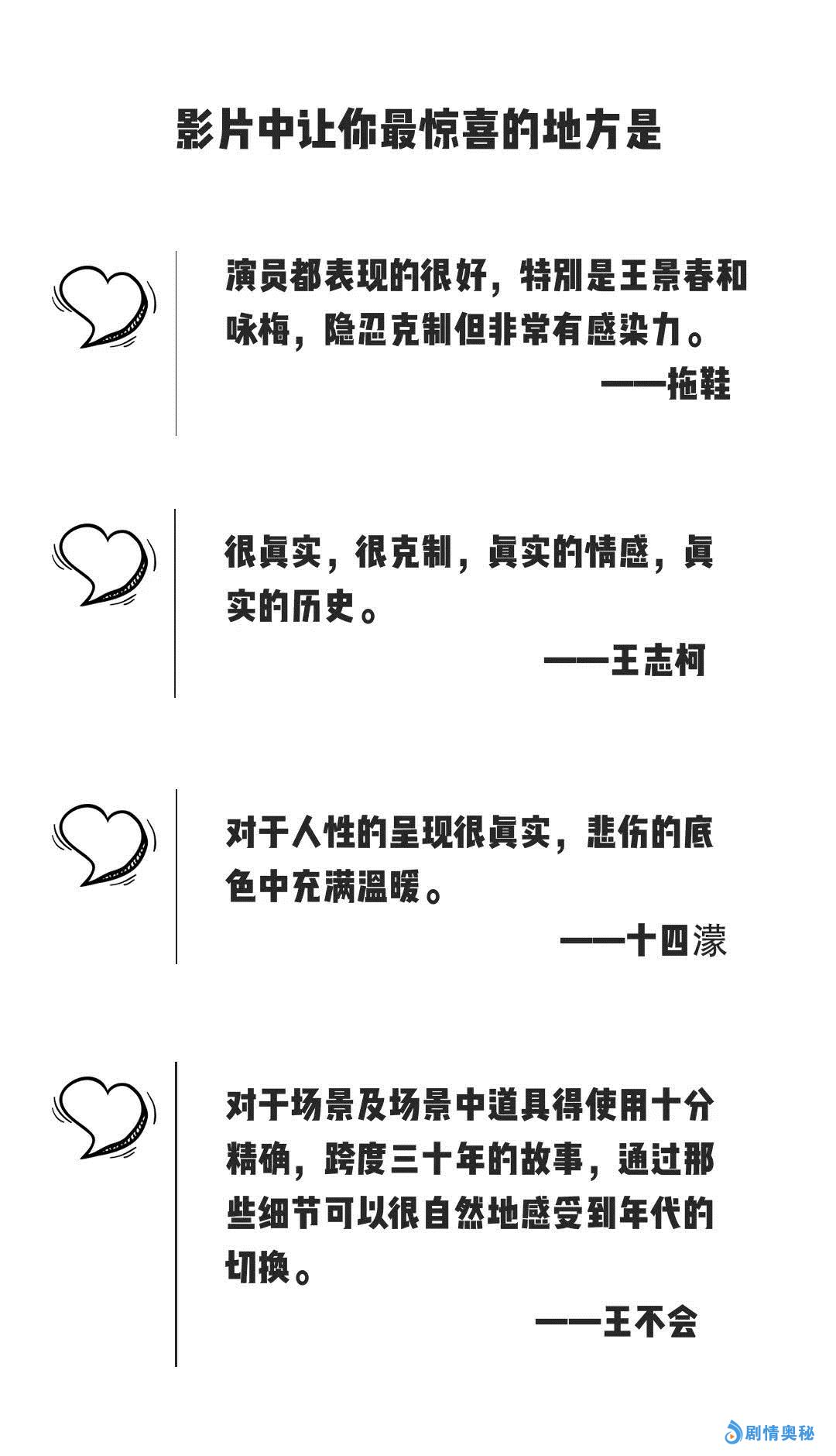 《地久天长》另一个与很多院线电影不同的地方是,它的时长达到了将近3小时。在我们之前的观影团中,王小帅导演也分享过他对于时长的想法。那么大家对于这样一部相对来说比较长的电影的映后观感如何呢?