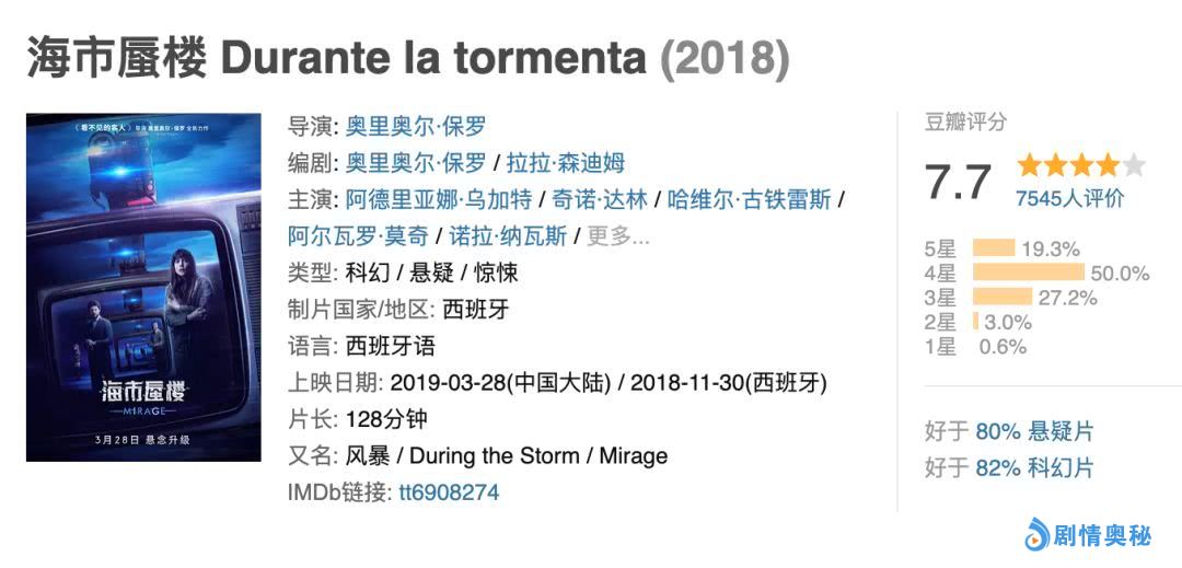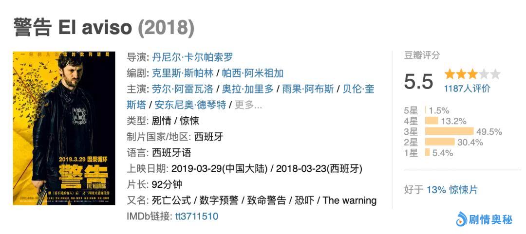 不过,这部电影因为是几乎一年前在西班牙就上映了,目前豆瓣也已经出了评价,不是特别好。5.5分,还没及格。