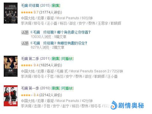 但《毛骗》从10年开播第一季,到15年终结篇,每一季评分都很好,深受观众喜爱,就连“舌尖”系列都没达到这样的一路好评。