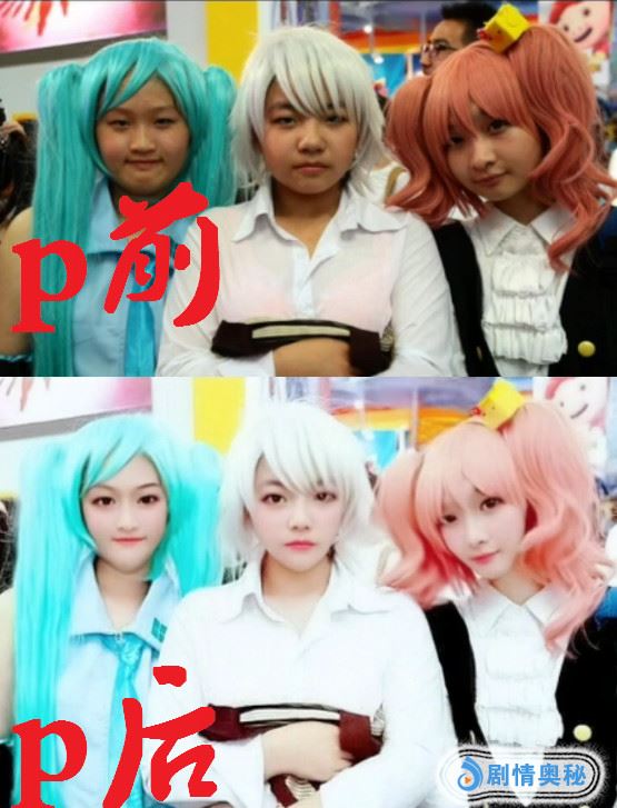 我们可以看到图上的是三个小姐姐,嗯,这肤色是非常的健康啊,这身材也是非常的健美啊,PS之前的他们走在大街上一定是那种看都不会看一眼的人吧。但是,ps之后的小姐姐,变的是非常的白啊,俗话说一白遮白丑,正的是太正确了啊,而且他们的脸变的是非常的小,这样的三个小姐姐走在街上,是不是就看到了爱情呢。