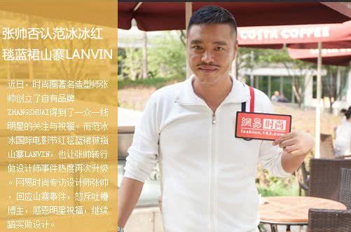有一次,范冰冰穿着一条蓝色单肩长裙亮相红毯,事后有时尚博主吐槽该裙有山寨国际大牌Lanvin之嫌,而这条长裙正是出自张帅之手。收到质疑后,张帅立马回击,称自己这条裙子设计于两年前,根本不存在抄袭,如果非要对比,那也是Lanvin抄袭自己的创意。