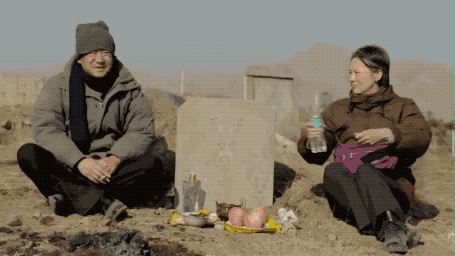 再看上坟一段,本来剧本设计是咏梅打开水,递给王景春,让王景春喝了一口,自己也喝了一口,然后盖上盖子。