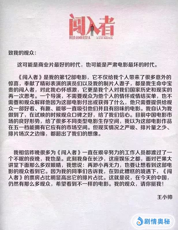 过去的王小帅,曾是地下片导演,进入市场后,发现他的电影果然不受主流观众欢迎。上一部作品《闯入者》,他还在抱怨排片太少、票房太差。