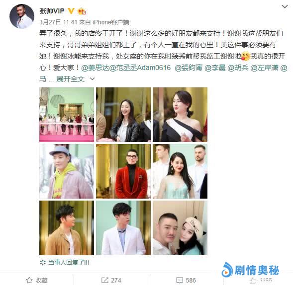 张帅在微博中除了@了范丞丞、李晨、胡兵、张钧甯等多位明星表示感谢之外,还特地感谢了范冰冰帮他“监工”。网上人物百科资料显示张帅是“造型师,中国十大化妆师,国际彩妆品牌M.A.C中国区特邀化妆师、中央电视台特邀化妆师及多位一线明星、艺人指定化妆师。”从他之前发的多条微博来看,他和多位明星都和互动,确系娱乐圈内有名的造型师。