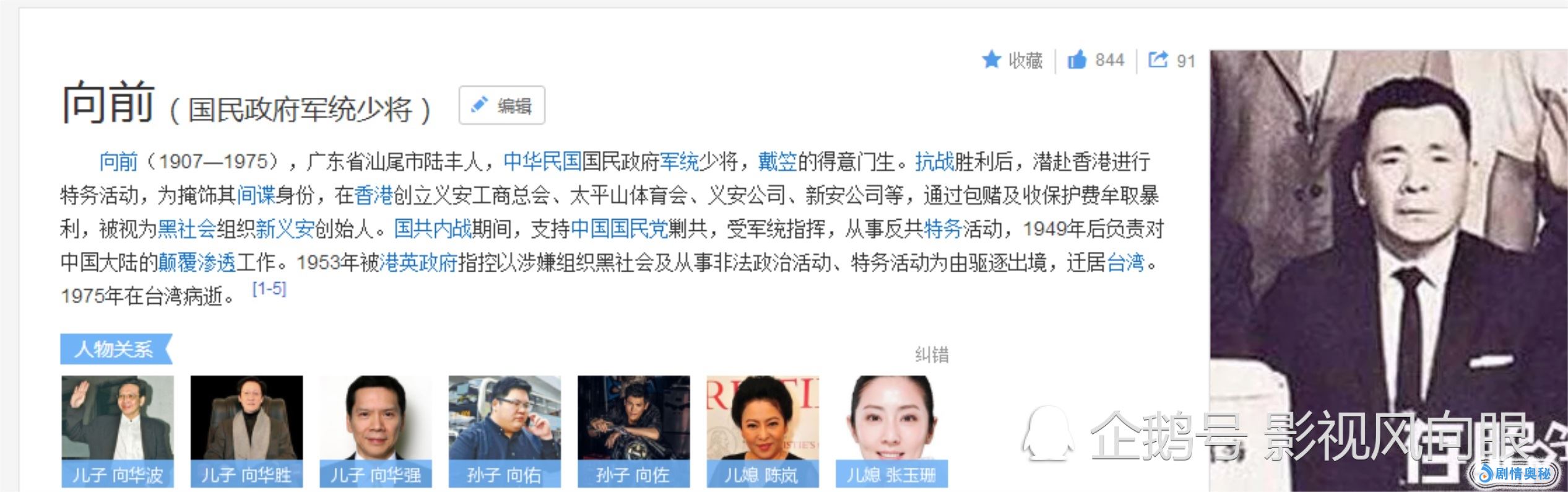 通过资料获知,向前曾是国民政府军统少将,并且还是某个总会的创始人,在上世纪40年代的香港有很大的势力,这也就成为了以后向华强的雄厚基础。