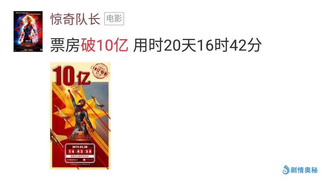 《惊奇队长》全球票房早已超过60亿,中国市场到现在才艰难破10亿,对比之下,漫威投资方颇为失落。