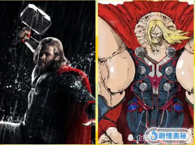 首先我们可以看到的是雷神了,他在剧中就是一个四肢发达的英雄,据说雷神的肌肉还经过特效P掉很多,因为他的肌肉实在太多了,当他肌肉化后,感觉很贴合雷神这个形象,手臂变成了麒麟臂。