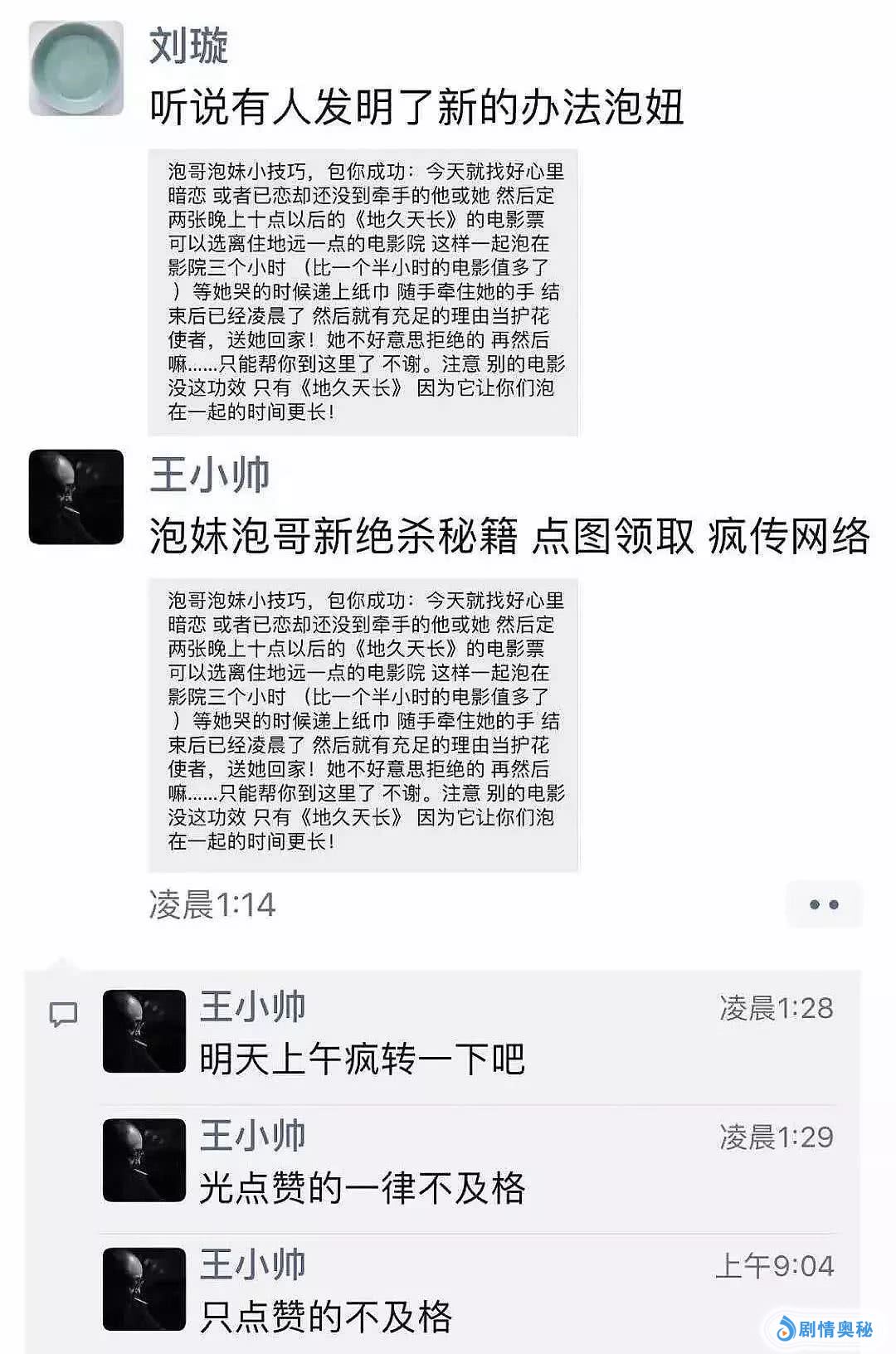 橘子截取了关键词:泡哥泡妹、牵手、初夜、护花使者、泡在一起、嘿嘿嘿嘿