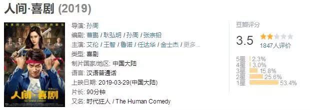 《人间·喜剧》由孙周执导,他近年的电影作品几乎部部口碑扑街,《不可思异》3.8分,《我愿意》5.8分,而新片一上映就刷新了评分新低,评分仅3.5分。