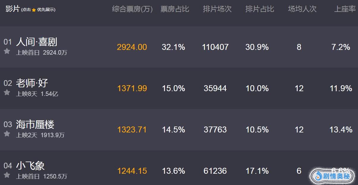 《海市蜃楼》在内地票房还真不赖,放映场次比好莱坞巨制《小飞象》少了近一半,票房却轻松击败对手,又一部黑马诞生。这部影片其实是去年的作品,继《比悲伤更悲伤的故事》后,又一部老片票房要爆了。今天的上座率力压众大片夺冠,还打败好莱坞1.7美元巨制,这个牛可以吹好几年,迪士尼这部新片要亏本了。