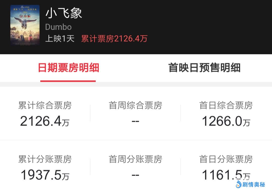 然而这样一部好莱坞大片,却无法赢得内地观众的芳心,《小飞象》登陆内地院线后票房遇冷,首日票房仅1266万,相比高昂的制作成本,这部好莱坞大片亏得有点惨!