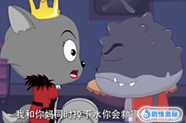 从这里也是能看出来,在面对这个问题时,红太狼真的是比较伤心了,而在之后红太狼突然忘了回答一个问题“如果我和你妈掉水里,你先救谁”,这个问题对于男人来讲绝对是致命的一击,毕竟不管救谁似乎都是一个错的,但是灰太狼去完美的展示了回答这个问题最好的方式