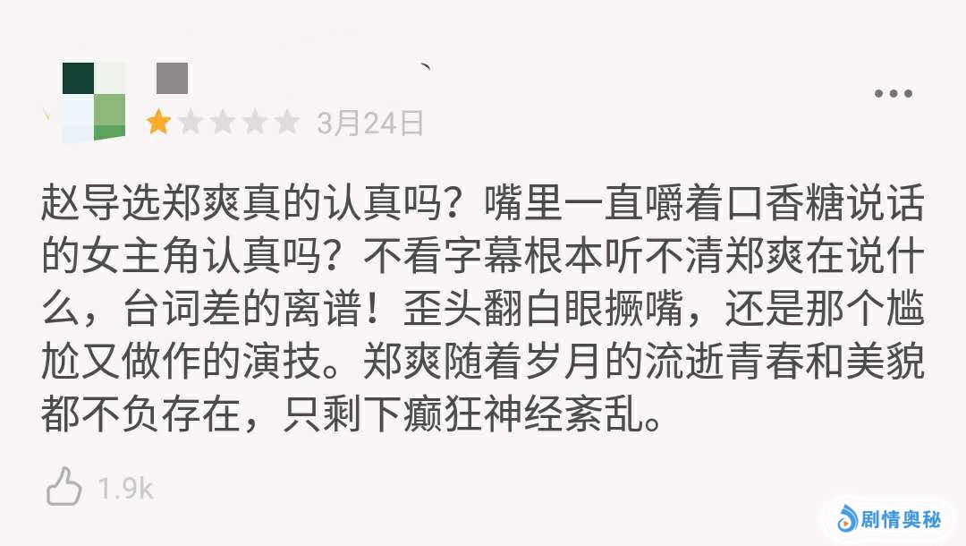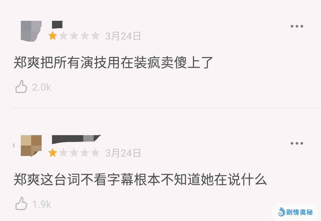 除了以往表情生硬做作尬演的老问题,这次郑爽台词功力又成了新的槽点。宝刚导演居然没有给她找个配音,真是勇气可嘉。